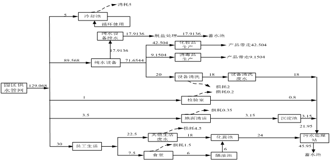 图3-1 项目非雨天水平衡图 单位:m3/d