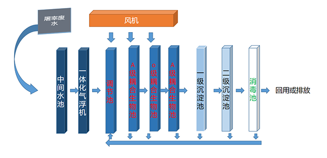 承包范围:水处理站设备制造、安装、调试等所有内容,从设备进水口至设备出水口。水处理站主要工艺:屠宰废水+细格栅+一体化气浮机+厌氧池+缺氧池+好氧池+二沉池+出水