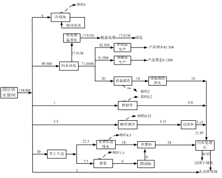图3-1 项目非雨天水平衡图 单位:m3/d
